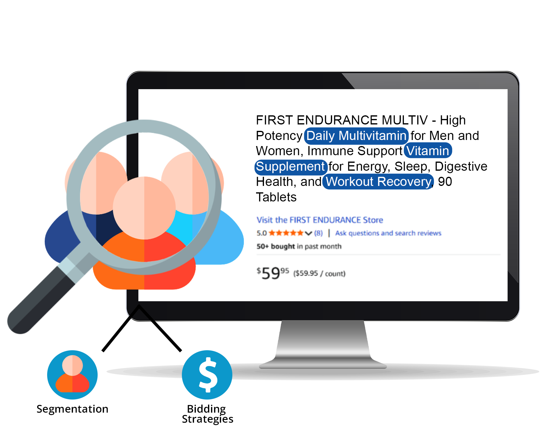 Example: Manual campaigns allow us to target very specific keywords, such as “Daily Multivitamin for Men” or “Immune Support Vitamin Supplement.”